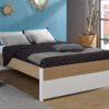 Le cadre du lit enfant est en bois MDF décor chêne clair et blanc, les 4 pieds du lit sont en bois massif. A ce cadre de lit enfant, vous disposez un sommier en lattes de pin massif qui sont fixées sur le cadre de lit.